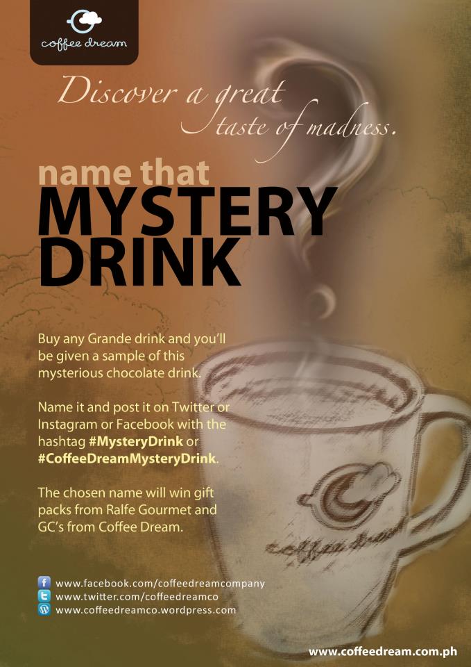 So I pitched an idea: why not come up with a contest that will allow Coffee Dream customers to have the chance to name the new Coffee Dream Mystery Drink?