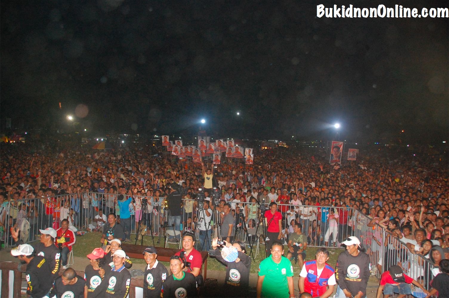 Anyways, after hours of preparation, this was what happened the evening of March 2, 2013. Tens of thousands of people were already gathered at the Capitol Grounds in Malaybalay City, Bukidnon. I have to say, though – the Team UNA campaign rally in Bukidnon was a concert-slash-rally-slash-fireworks-display event. Since it was the Kaamulan Festival 2013, there was a telecom-sponsored concert that night (topbilled by Itchyworms and Tanya Markova) plus the much-awaited grand fireworks display. Yes, there were people who came to hear the Team UNA senatorial candidates speak but there were also who came to watch the concert and see the fireworks display, which has already turned into an annual activity.