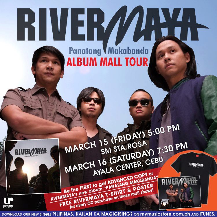 Rivermaya will be at Ayala Center The Terraces Cebu on March 16, 2013, 7:30 PM for the album tour of “Panatang Makabanda,” featuring the latest single “Pilipinas, Kailan Ka Magigising?” (penned by Rivermaya founding member Mark Escueta).