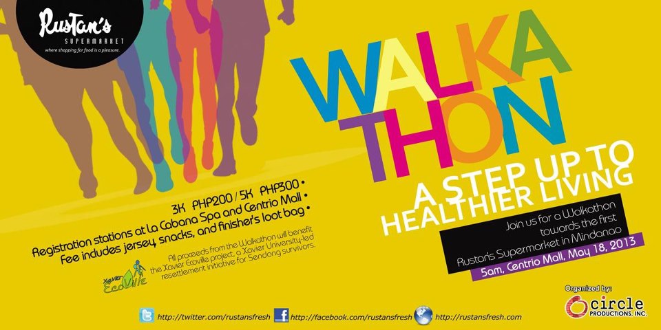 This time, I have more exciting news for you! Rustan’s CDO supermarket is sponsoring a Walkathon! The Rustan’s Fresh Cagayan de Oro Walkathon will be held on May 18, 2013, 5 AM, Centrio Mall. There will be two categories – 3K and 5K. Registration fee for the 3K – Php 200.00 while for the 5K – Php 300.00